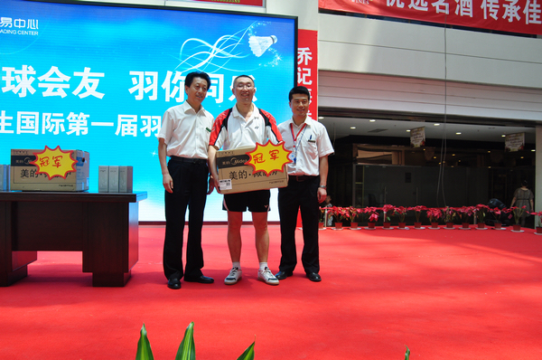 决赛后,和生国际食品交易中心首届羽毛球比赛落下帷幕。和生国际贾耀华经理为胜出的选手们颁发冠、亚、季军奖,获奖选手分别得到由和生国际食品交易中心提供的微波炉、豆浆机以及水杯等奖品。